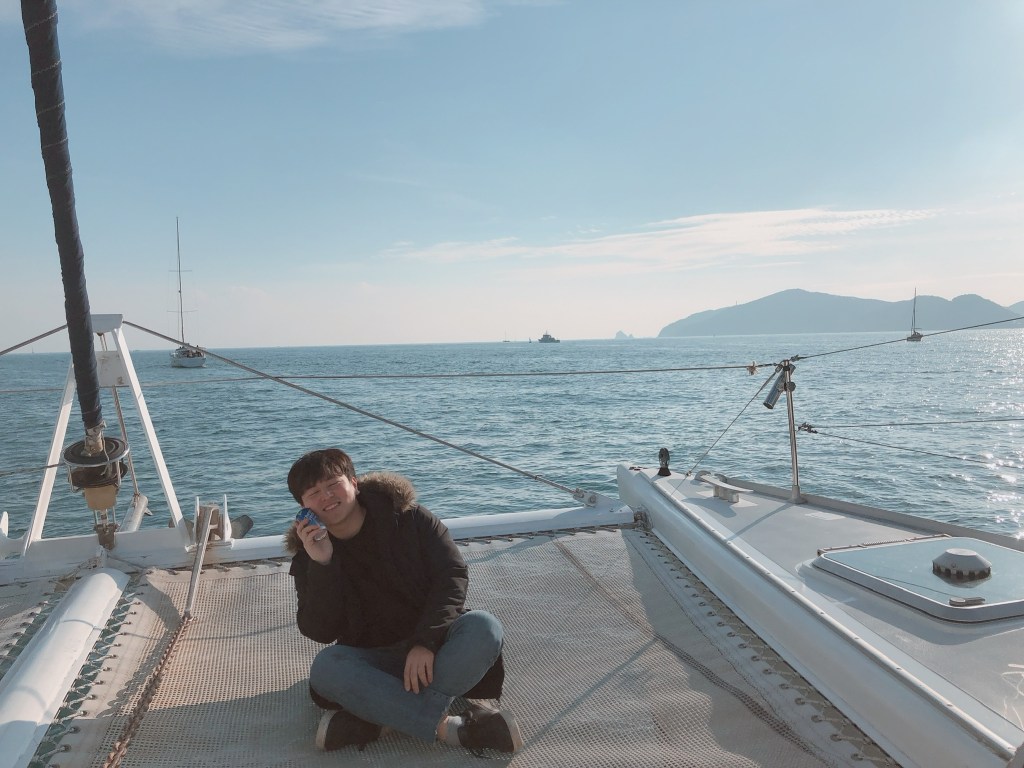 We took a 50-minute course that passed under Gwangandaegyo Bridge and we got to try fishing, and drinks were also provided on the yacht.